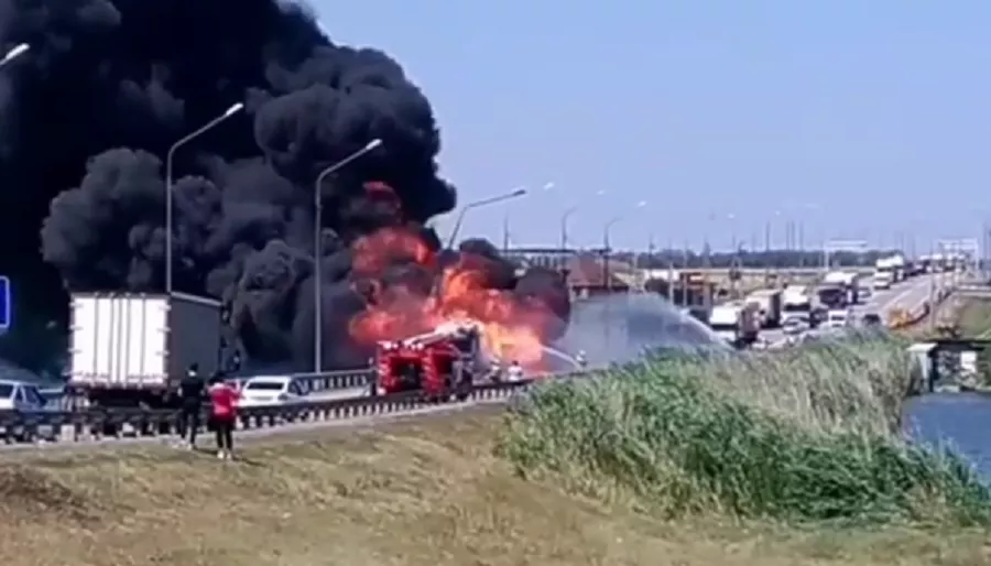 В паблике «Туподар» опубликовали видео, снятое на федеральной трассе М-29 «Кавказ» в станице Юго-Северной. На кадрах видно, как на дороге горит грузовик, спасатели поливают его водой из шлангов. Происходит взрыв, но несмотря на это, пожарные продолжают тушить огонь.
