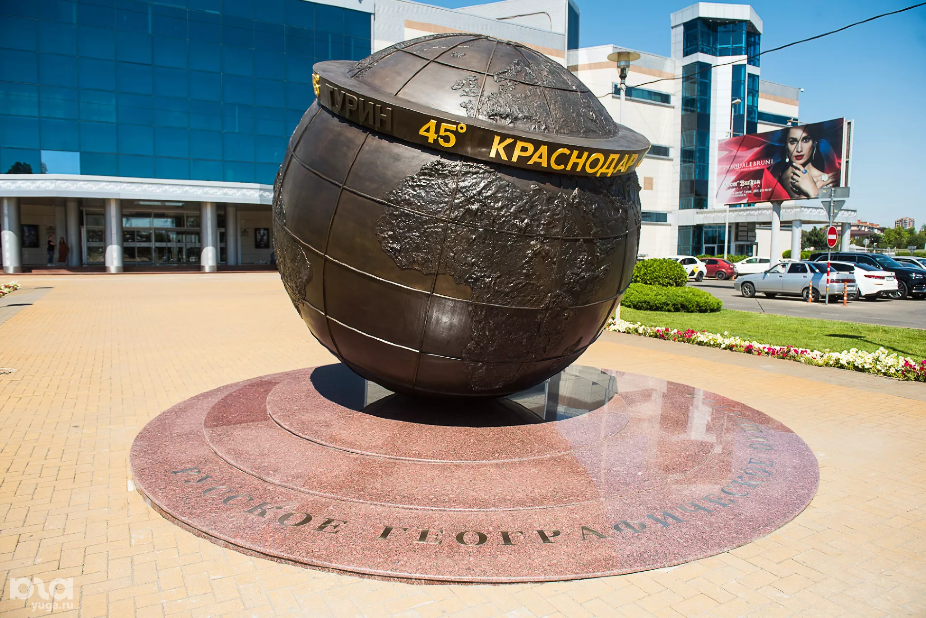 В мае 2020-го скульптуру привезли в Краснодар и начали ее установку. На трехметровом земном шаре с выделенной параллелью отметили наиболее известные города мира, которые на ней располагаются. Среди них итальянский Турин, американский Миннеаполис, французская агломерация Бордо и канадская Оттава. Композиция весит почти 4 тонны, ее обрамление сделали из индийского гранита.