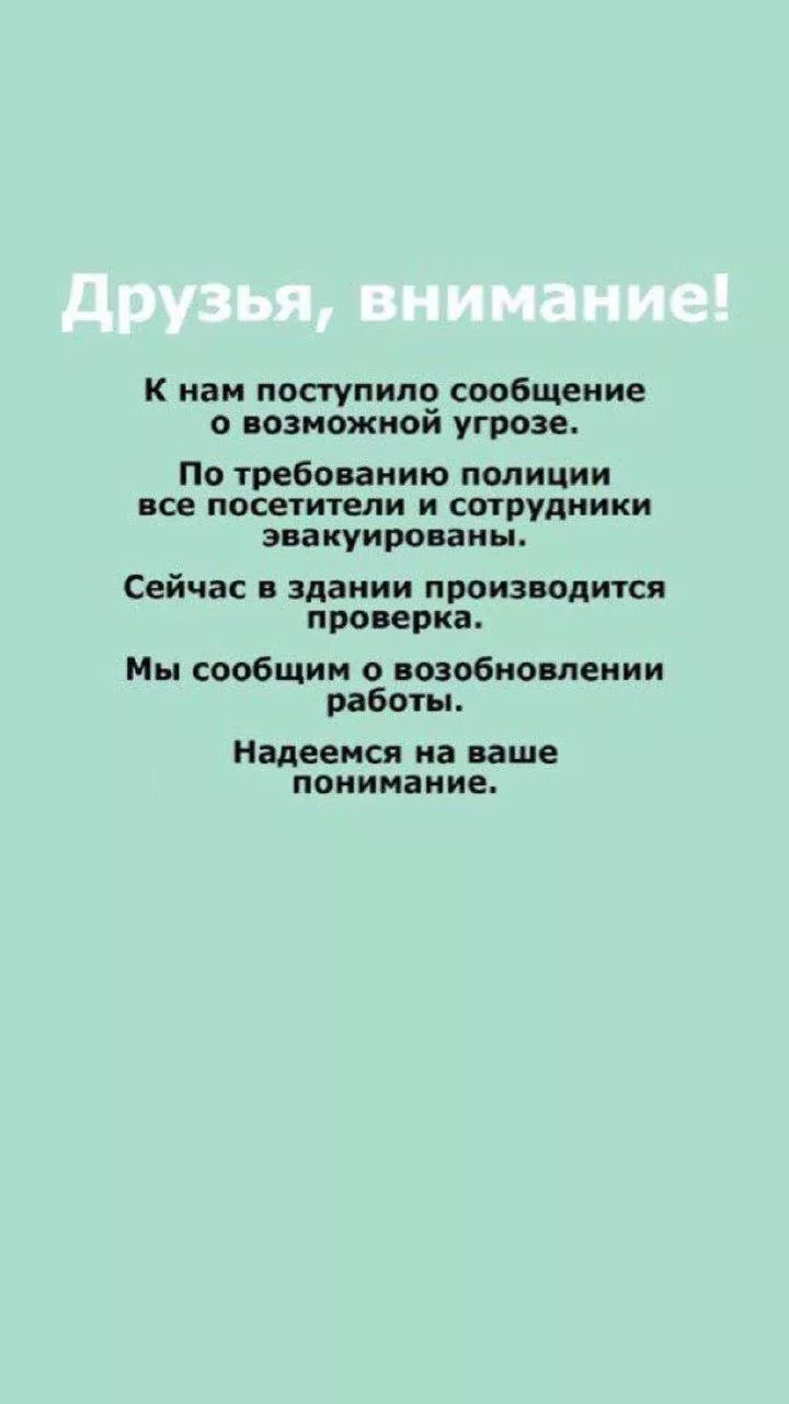 «По требованию полиции все посетители и сотрудники эвакуированы. Сейчас в здании проводится проверка», — говорится в сторис торгового центра.