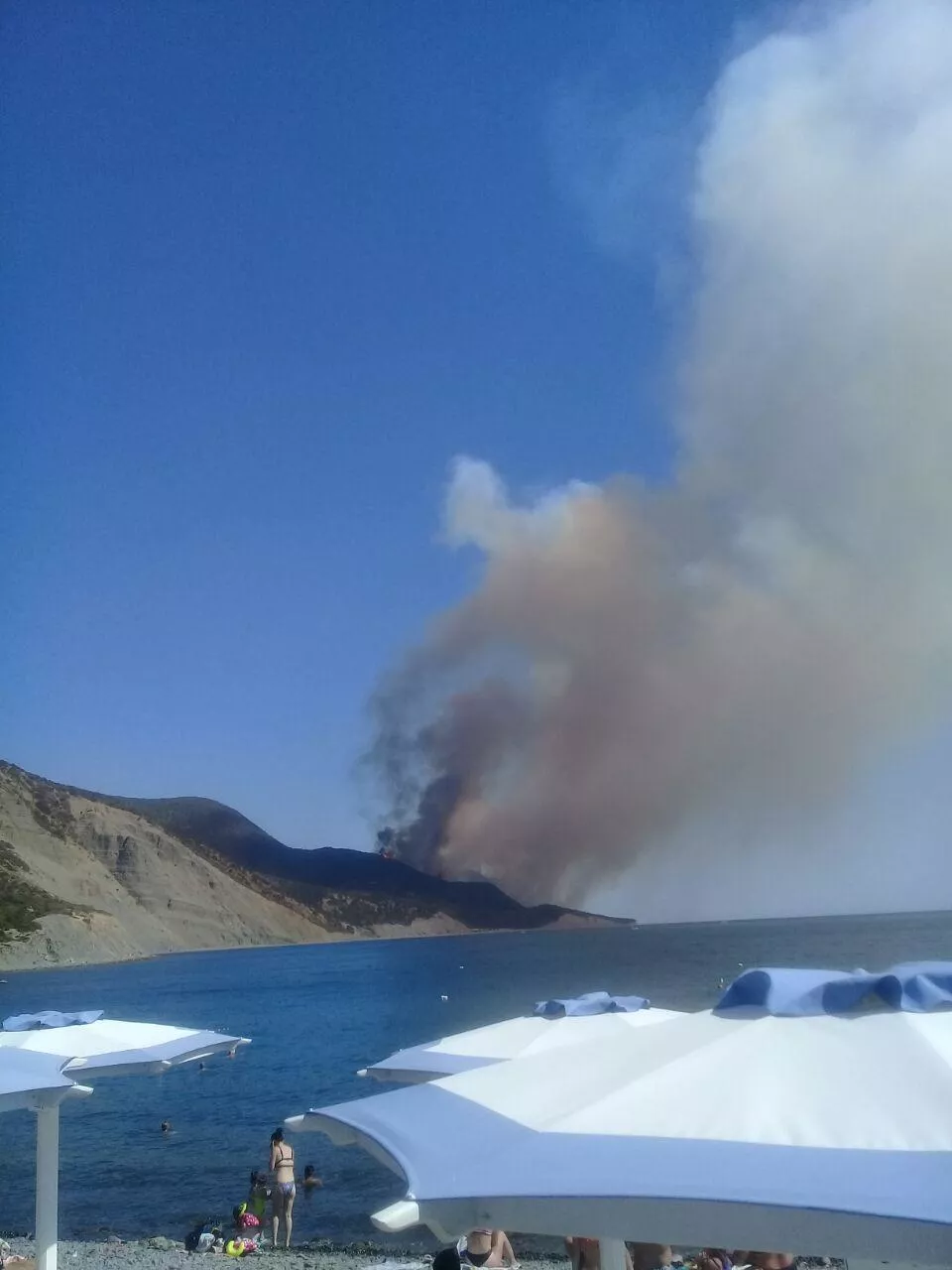 Также в 14:48 в телеграм-канале «Хороший Геленджик» опубликовали фотографию природного пожара. Как сообщили очевидцы, загорелся лес в районе Кабардинки.
