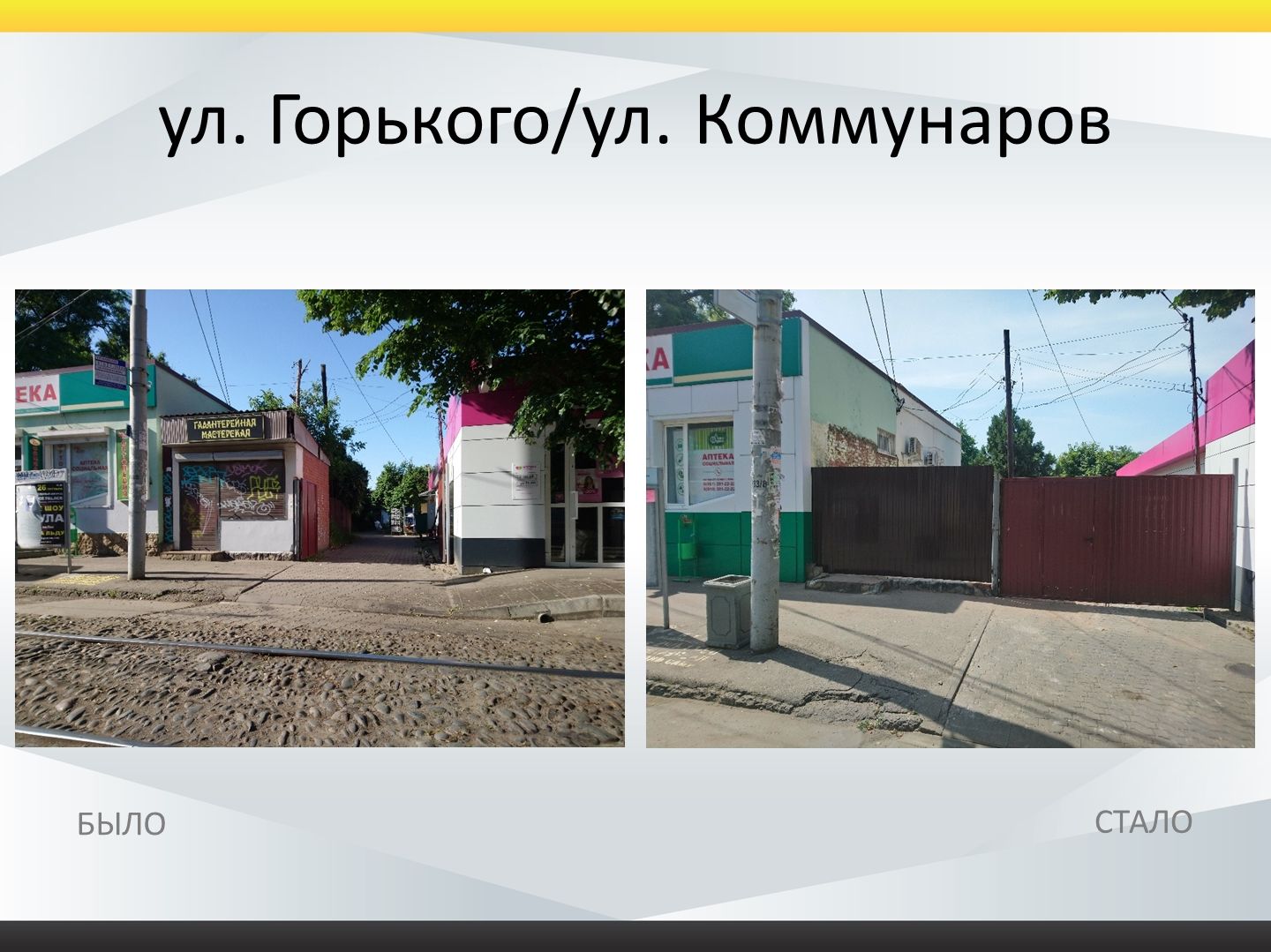Кроме того, за это время убрали пять павильонов и забор по трем адресам: на Сормовской, 110 (три ларька), на Зиповской, 14 (два павильона) и Дежнева, 33 (забор).