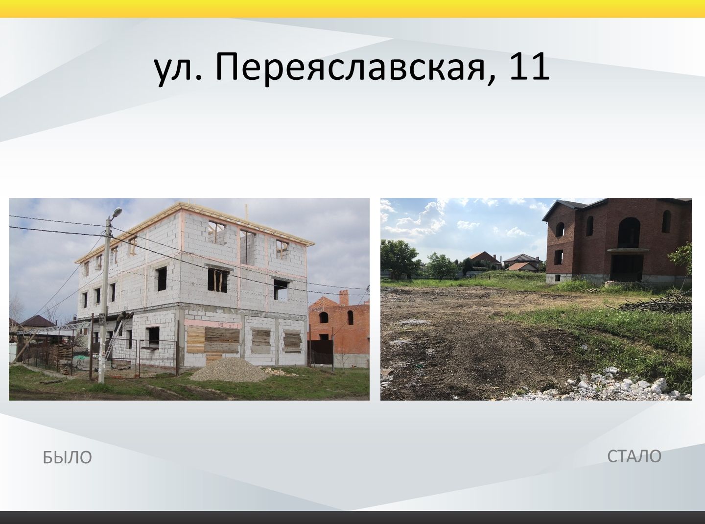 На улице Кубанской, 169 демонтировали самострой площадью 72 кв. метра, на Ростовском шоссе, 12/11 — объект капитального строительства, который имел 203 кв. метра. Самый большой объект снесли на Переяславской, 11 — он располагался на 195,8 кв. метрах.