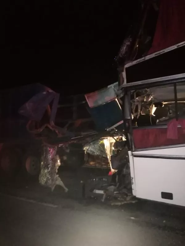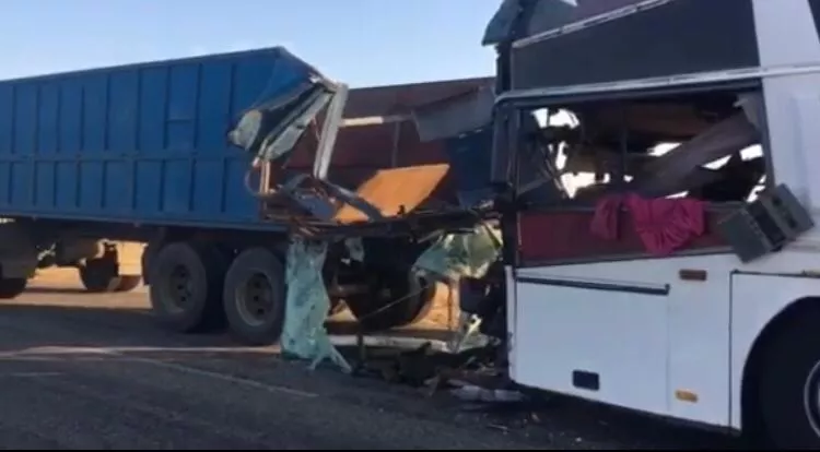 В Калмыкии ночью 26 августа пассажирский автобус из Дагестана врезлся в КамАЗ