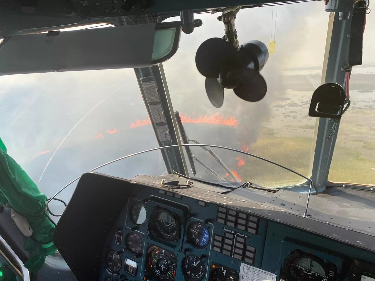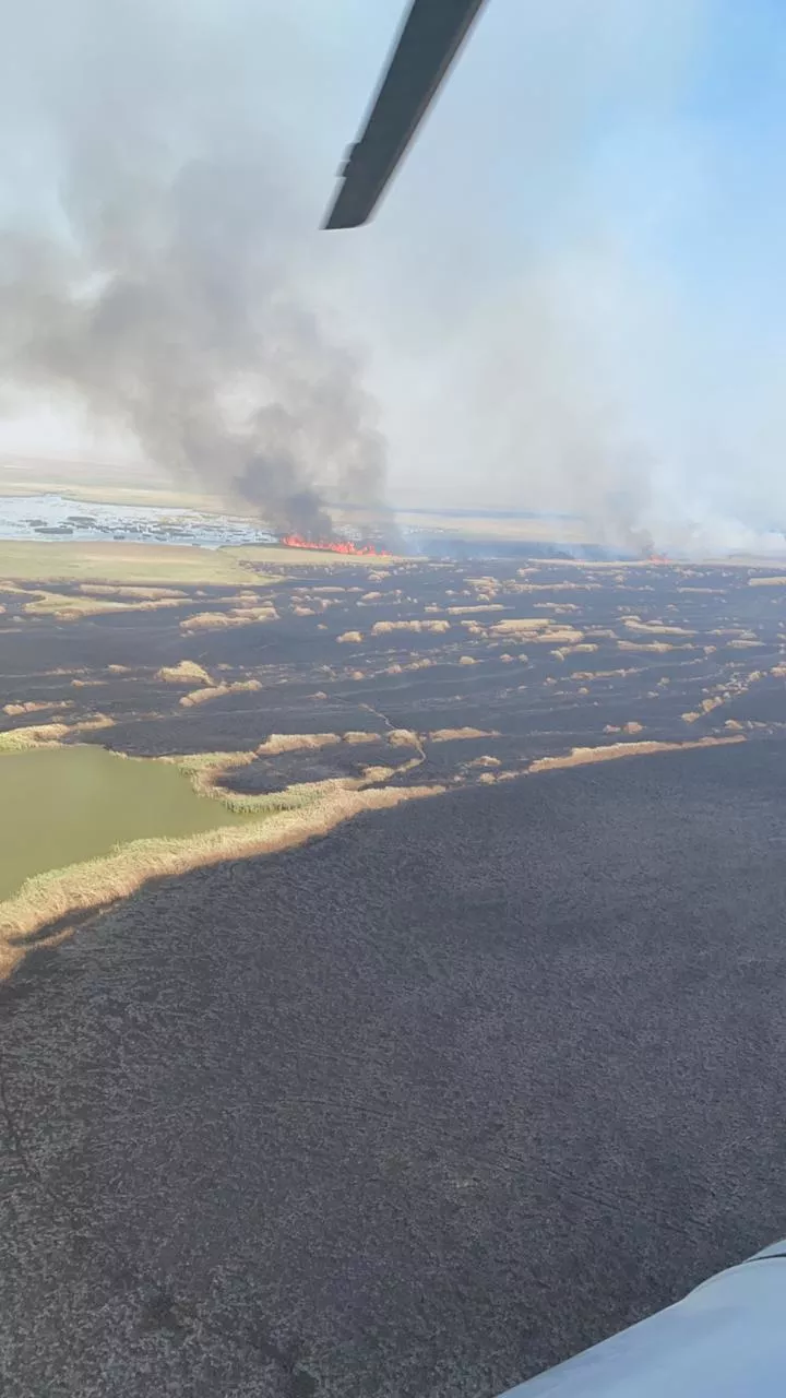 Сотрудники «Кубань-СПАС» организовали на хуторе Садки окарауливание по кромке тления, чтобы обезопасить населенные пункты от огня.