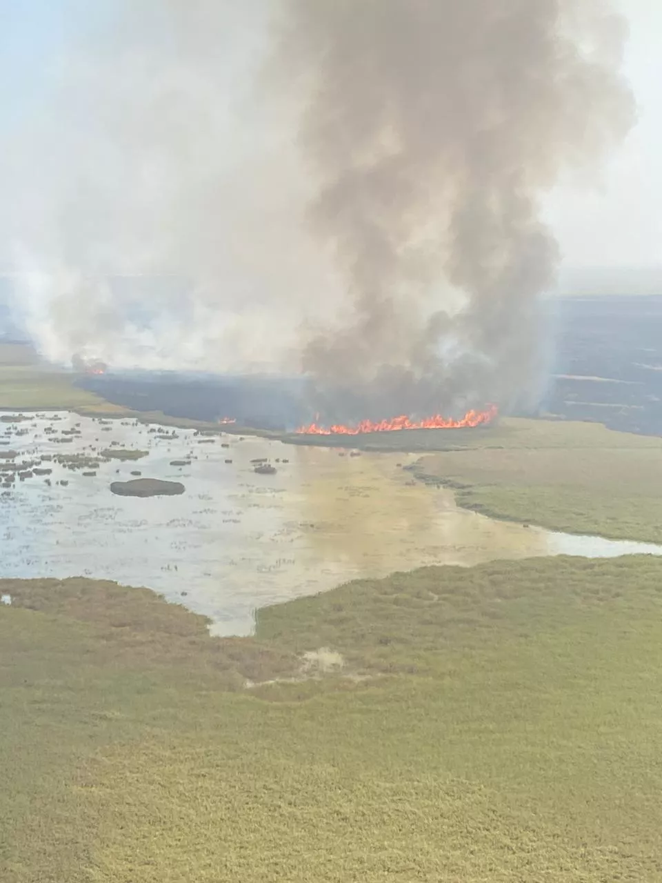 В плавнях Приморско-Ахтарского района 2 сентября начался природный пожар