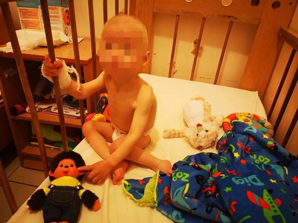 «В свои почти 1 год и 11 месяцев он весит 6 кг, когда он лежит, то выглядит на 6-месячного ребенка [...], у него деформирована затылочная часть головы от того, что изверги, ухаживающие за детьми, просто его не переворачивали [...], он не знает своего имени не от того, что у него нет интеллекта, он просто его не знает, а в сентябре ему уже 2 года! И "вишенка" — его ребра обтянуты кожей без мышечной массы, у него подкашиваются ножки-спички при попытке поставить. На его копчике свищ, о котором мне забыли сказать!», — рассказала женщина.