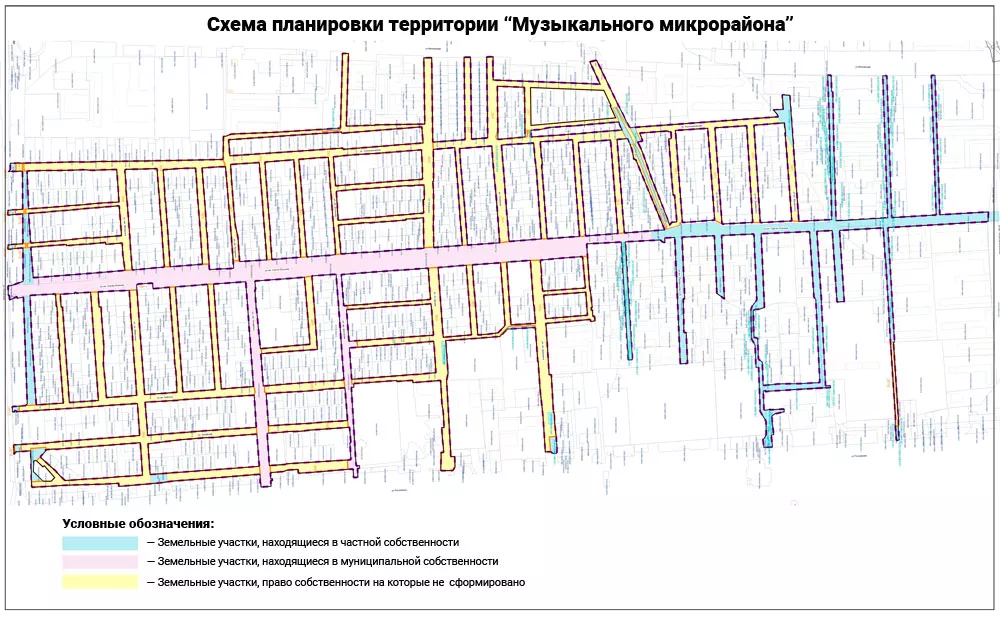 Для строительства дорог, ливневки и уличного освещения в Музыкальном разработали документацию по планировке территории. В ней в том числе представлена схема въездов и выездов из микрорайона, предварительно проработана схема уличного освещения.