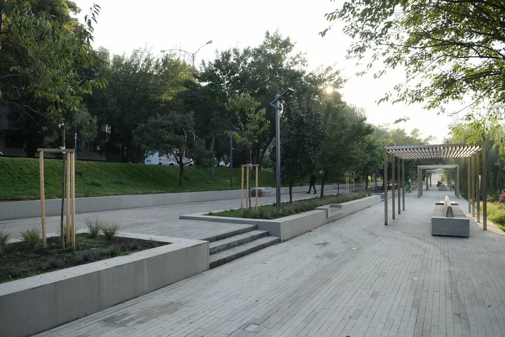 25 сентября в пресс-службе мэрии рассказали о завершении работ. На территории уложили тротуарную плитку, газон, установили светильники, сформировали систему полива. Также на участке появился памп-трек и навигационные стелы со схемой сквера и подсветкой. Сейчас завершают высадку ив, туй, груш и черемухи, кустарников и цветов. Устанавливают лавочки и перголы, также планируется оборудовать зону тренажеров и детскую площадку.