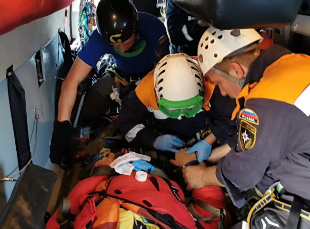 Двое участников группы самостоятельно спустили 48-летнего пострадавшего до нижней части ледника, где спасатели положили его на носилки и транспортировали до вертолета. Медик ЮРПСО МЧС России на борту воздушного судна оказала ему доврачебную помощь — установила внутривенный катетер с обезболивающим препаратом.