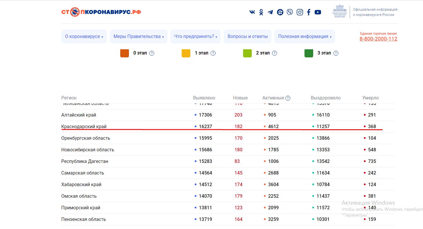 22 октября федеральные власти сообщили о 182 новых случаях заражения коронавирусом в Краснодарском крае. Однако региональный опрештаб дал другие данные