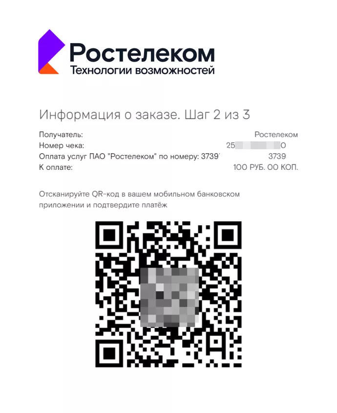 Средства сразу поступят на счет «Ростелекома», а клиенту придет чек на электронную почту или телефон.