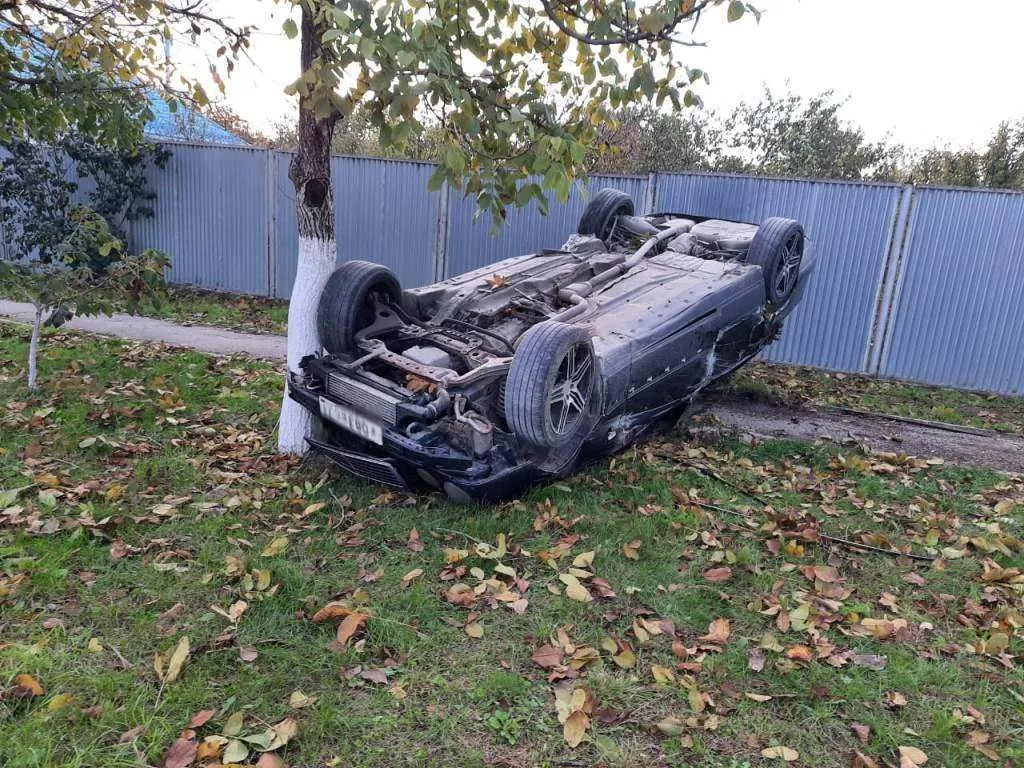 ДТП произошло около 7:00 в станице Раевской. 35-летний водитель автомобиля Mercedes-Benz превысил скорость и не справился с управлением. Машина съехала с дороги, сбила 53-летнего пешехода, а после опрокинулась.