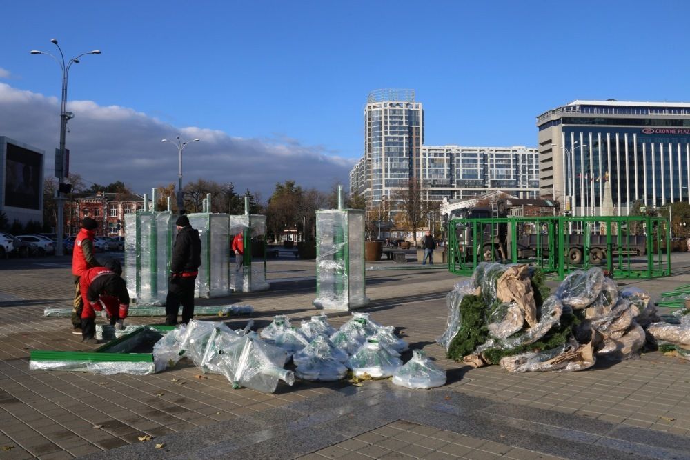 В центре Краснодара утром 1 декабря начались работы по установке искусственной ёлки