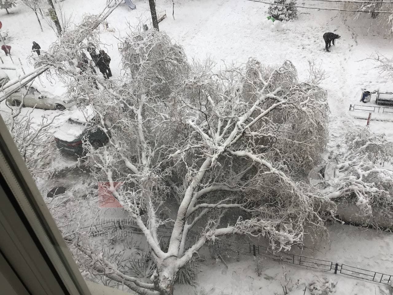 В 13:47 на пересечении улиц Клинической и Крупской произошел обрыв линий. Под тяжестью выпавшего снега дерево упало на контактную сеть. Из-за обрыва в оба направления встали трамваи №1, 2, 5, 8, 15.