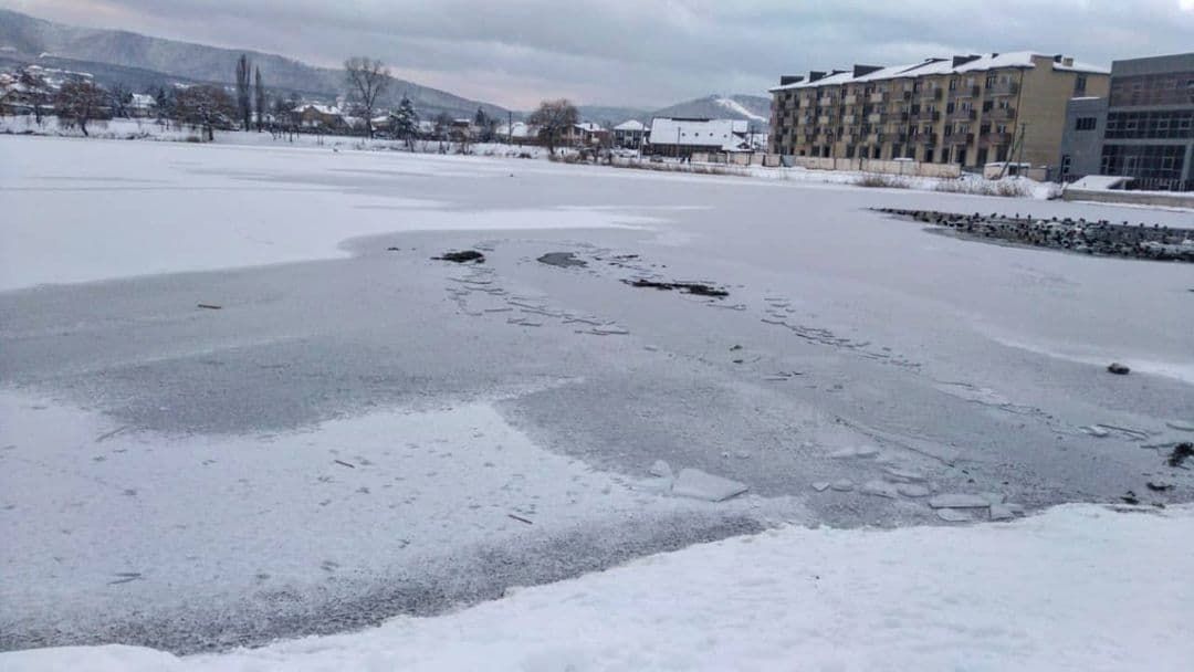 Мэр добавил, что начинается оттепель и температура стала подниматься. Озеро не замерзало полностью, и лед очень тонкий, поэтому выходить на него опасно для жизни, сказал Кильганкин.