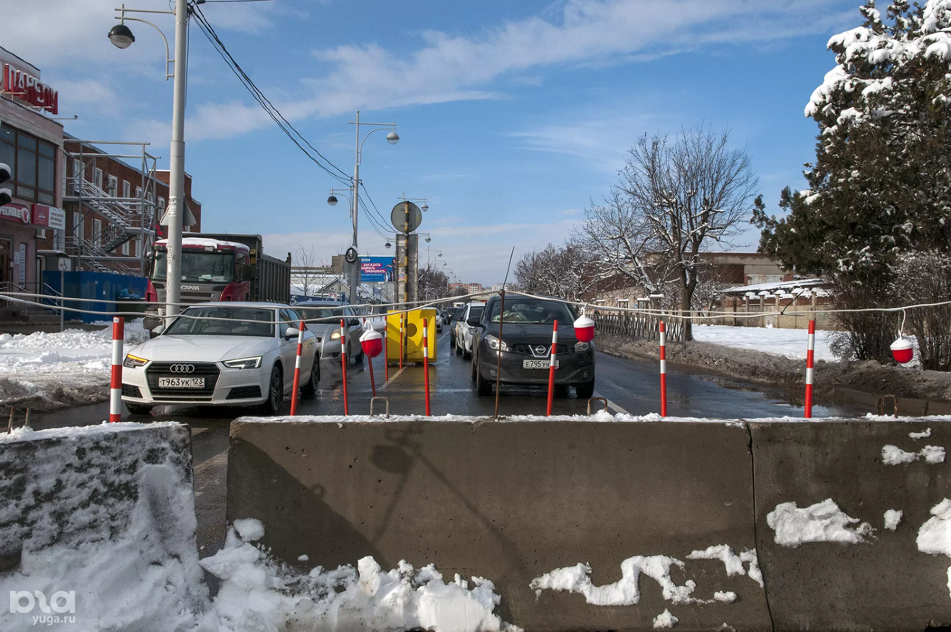 Временно выехать на Московскую нельзя как со стороны улицы Российской, так и с Ростовского шоссе. Проехать с улицы Солнечной на Московскую можно, только повернув направо, при движении в обоих направлениях, а с Московской повернуть на Солнечную получится при движении со стороны Петра Метальникова.
