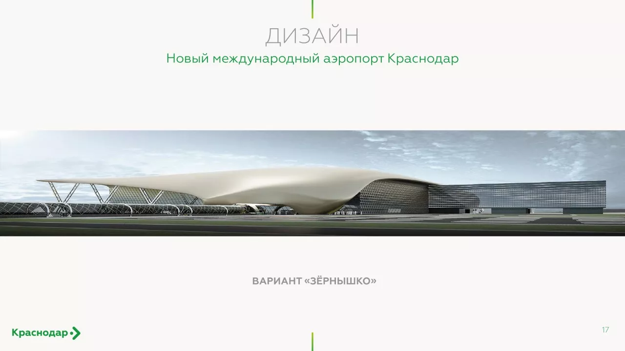 Напомним, осенью прошлого года краснодарский аэропорт представил три возможных варианта концепции нового терминала: «Digital», «Колосья» и «Зернышко». В соцсетях и СМИ больше всего оценили последний проект, именно его и выбрали для дальнейшей реализации. Планируется, что площадь территории аэропорта составит более 80 тыс. кв. метров, здание оборудуют десятью телетрапами, сообщили в пресс-службе Международного аэропорта Краснодар.