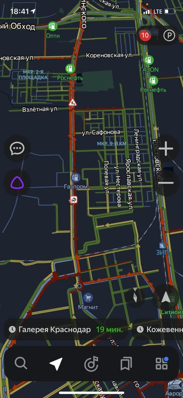 По данным сервиса «Яндекс.Пробки», уровень пробок в Краснодаре достиг 10 баллов уже в 17:48. Сейчас в краевой столице сохраняются 10-балльные заторы, что на 4 балла больше, чем обычно вечером в пятницу. Ожидается, что пробки начнут снижаться в ближайший час и к 20:00 достигнут 6 баллов.