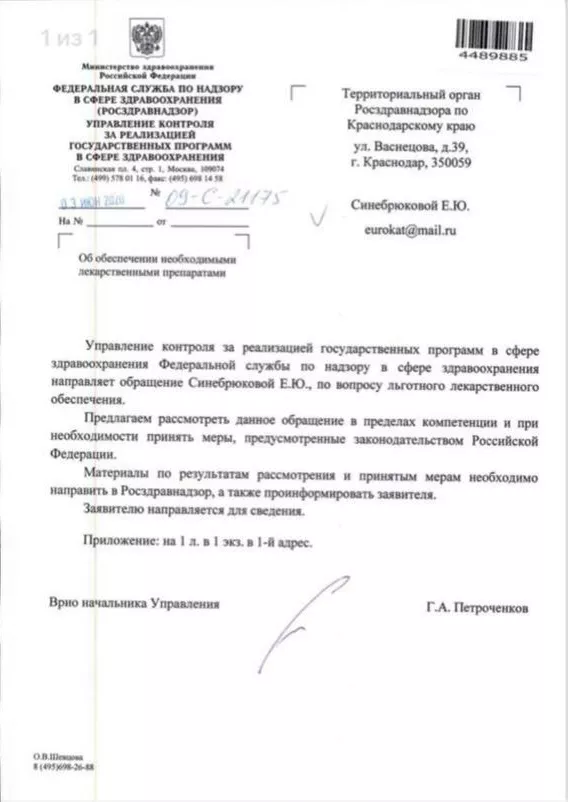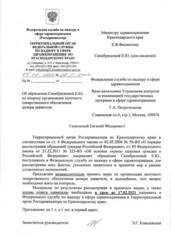 Женщина рассказала, что трижды обращалась Росздравнадзор, к уполномоченной по правам ребенка в Краснодарском крае Татьяне Ковалевой, писала в местную прокуратуру и Генпрокуратуру, в Администрацию президента и звонила в Общественную палату.