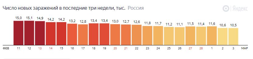Согласно федеральной статистике, в России за сутки зарегистрировали 10 тыс. 535 новых носителей коронавируса. За весь период число заражённых россиян достигло 4 млн 278 тыс. 750 человек. Из них выздоровели 3 млн 853 тыс. 734 (+15 тыс. 694), а 87 тыс. 348 умерли (+452).