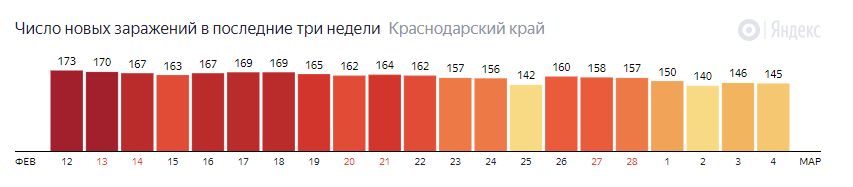 В Краснодарском крае за последние сутки выявили еще 145 случаев COVID-19