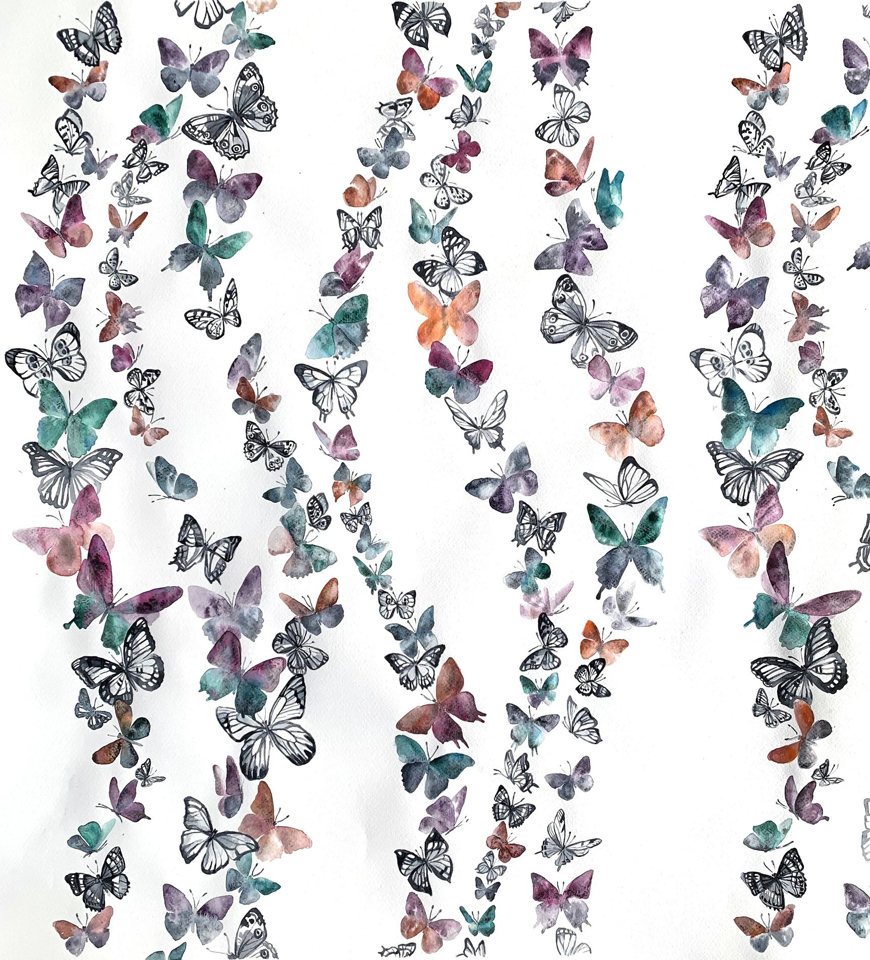 Экспозиция, созданная художницами творческого объединения VR Studio Design, включает более 20 работ — это рисунки для домашнего текстиля, одежды и обоев, паттерны, панно, а также графика, интерьерная живопись и иллюстрация.