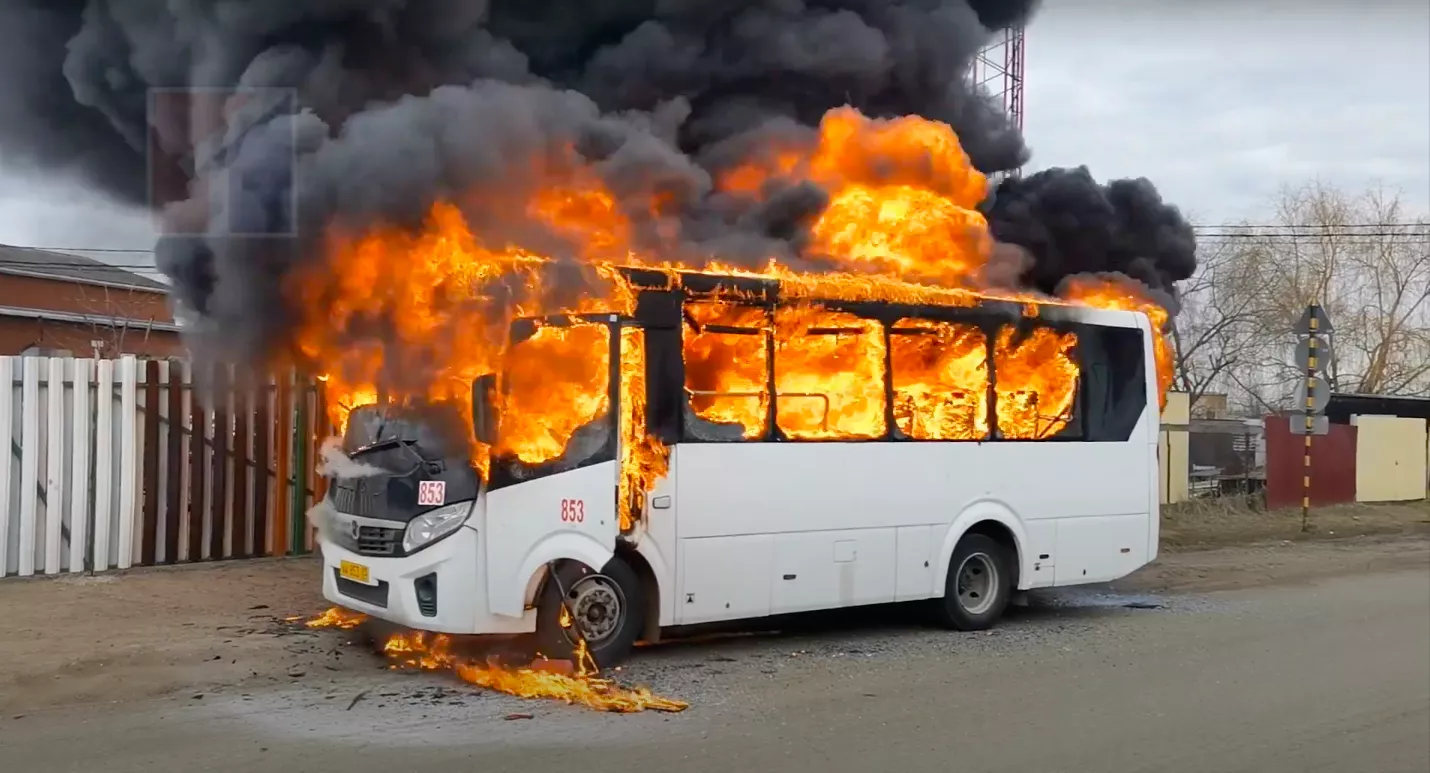 В Краснодаре утром 14 марта сгорела маршрутка № 48
