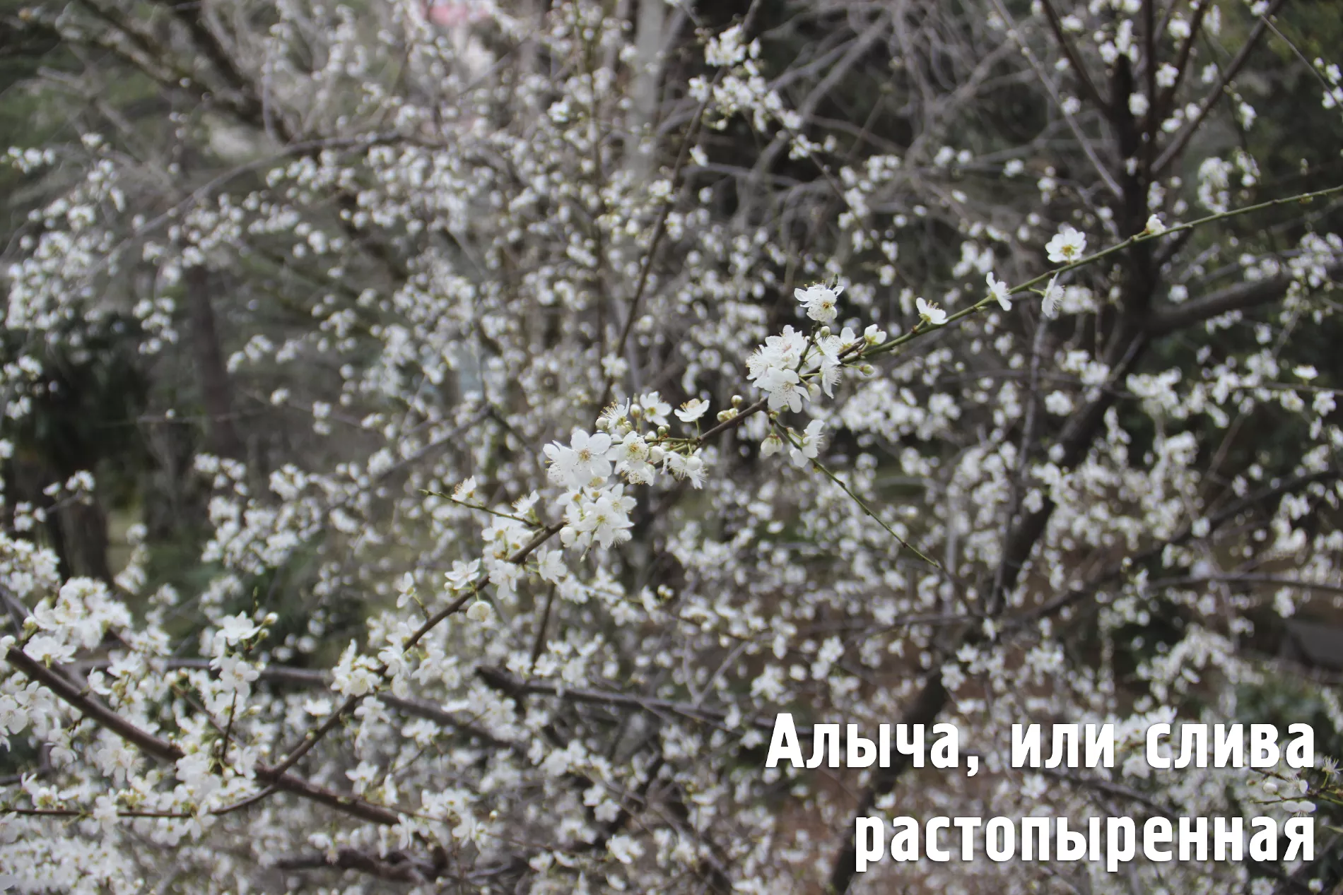 «Это слива растопыренная — невысокое многоствольное дерево с растущими практически горизонтально ветвями, за что вид и получил свое название. Весной все предгорья Сочи покрываются белыми облаками цветущей алычи», — уточнили представители парка.