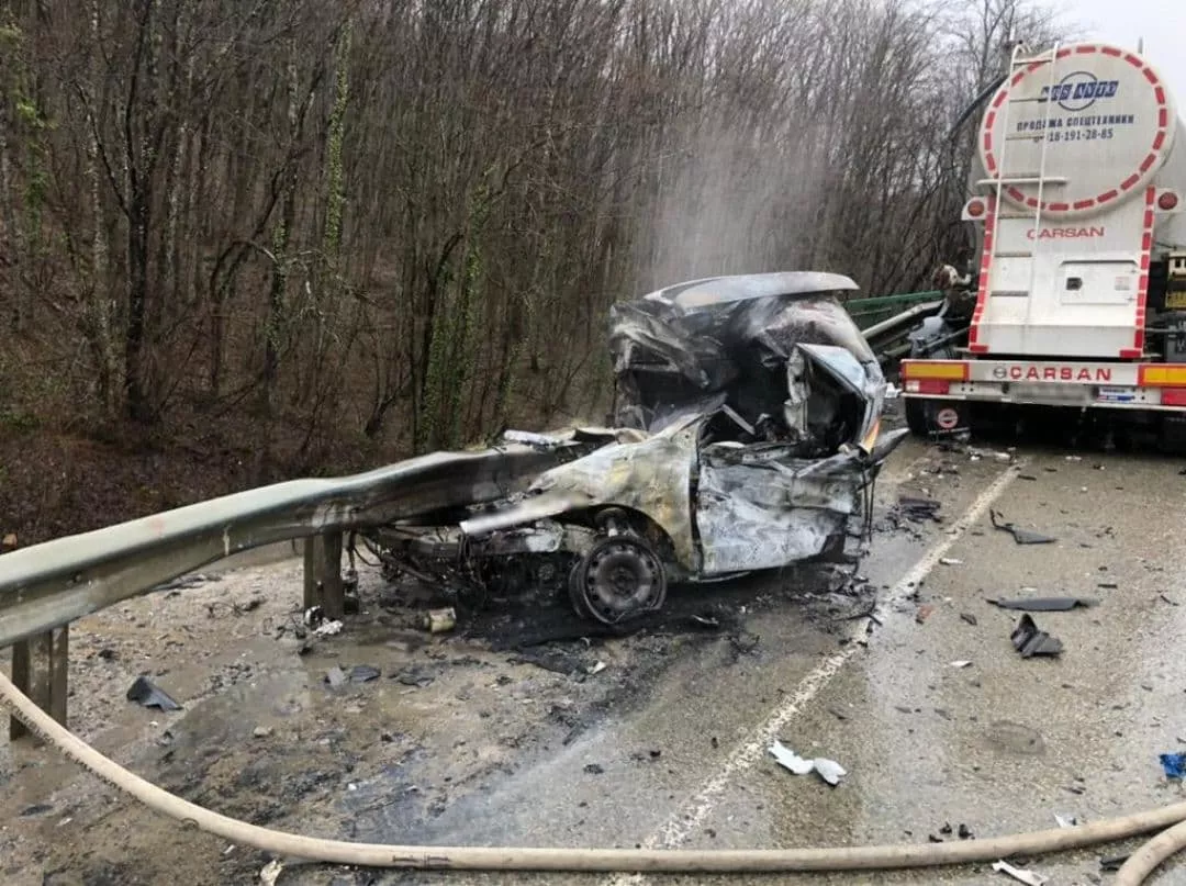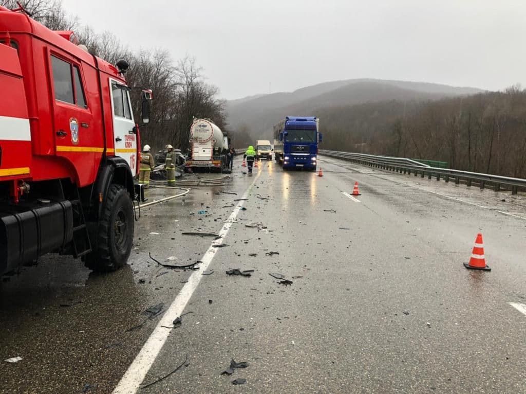 Под Горячим Ключом водитель врезался в цементовоз и погиб в горящей машине