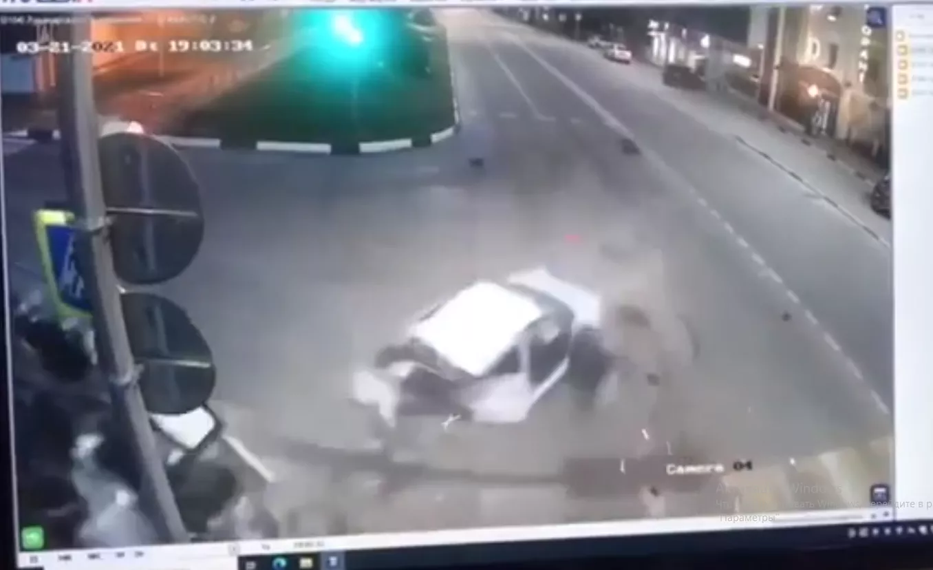 Машины столкнулись. От удара отечественную легковушку разорвало на две части и отбросило на дорожный знак. На кадрах с камеры видеонаблюдения видно, что часть машины с багажником и задним сиденьем отлетела в сторону.