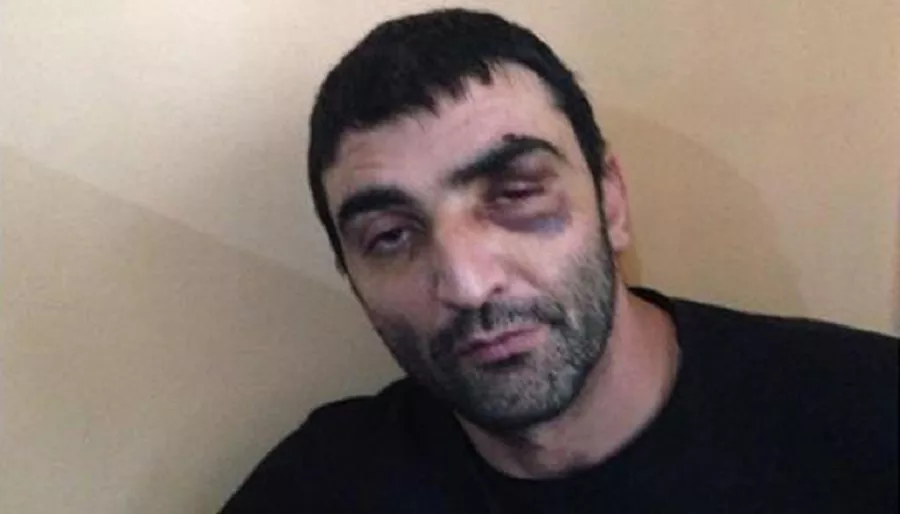 «С меня сняли наручники и застегнули на руках сзади, ноги зафиксировали между собой скотчем. После этого меня стали душить и ударили ногой в глаз. Наносили удары в правый бок. Кто-то крикнул: «хватит», на что другой ответил — «у него много здоровья», — вспоминает Петросян.