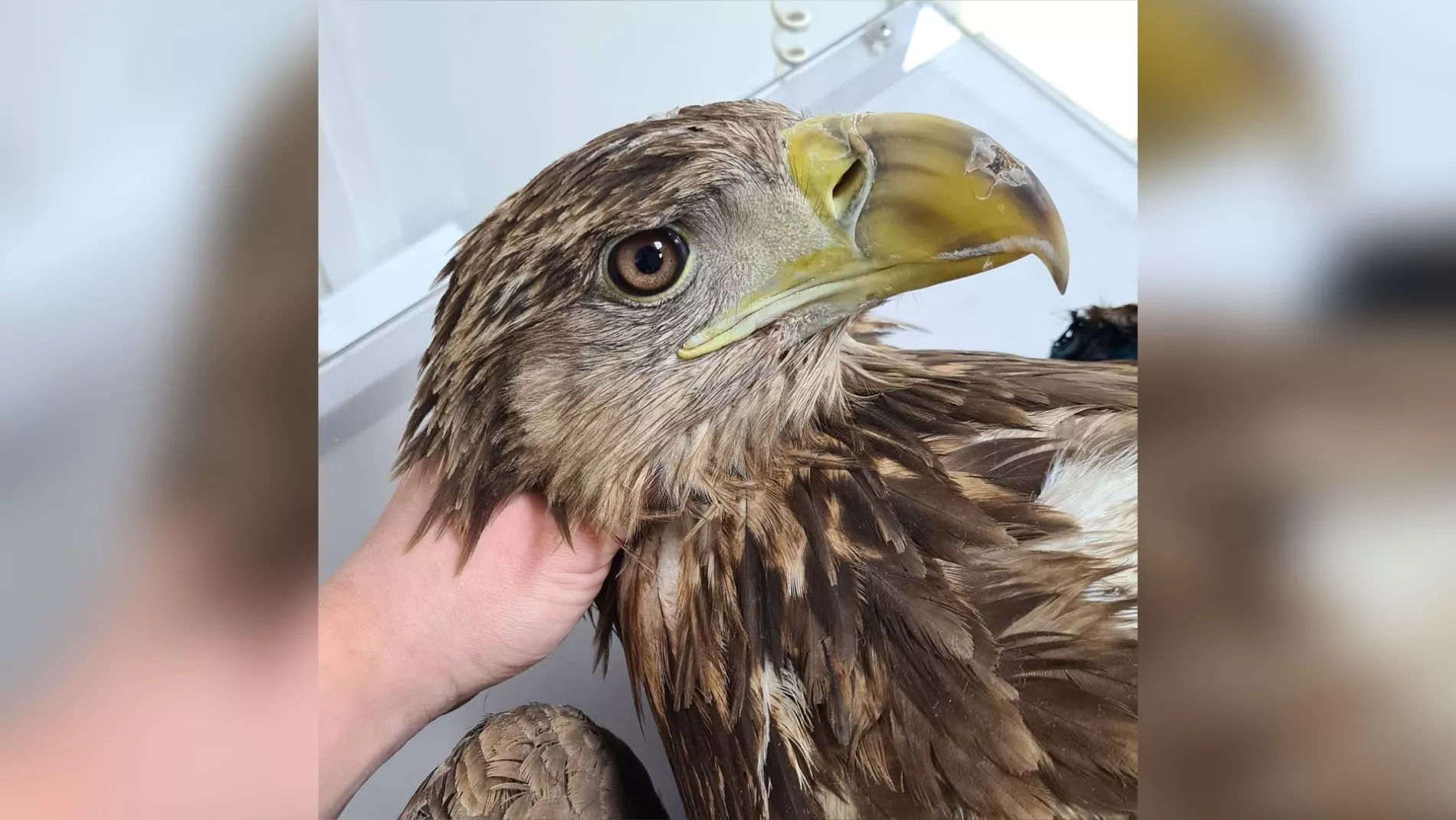В конце января в Ростове-на-Дону местные жители нашли молодого орлана белохвоста. Его на зоотакси отправили в краснодарский Центр реабилитации птиц к волонтеру Маритте Чотчаевой — ближе подобных организаций не было. Две недели орлан не мог сдвинуться с места, а первый осмотр показал пулевое ранение, открытые переломы правого крыла и две застрявшие в них пули. Птица потеряла 10 маховых перьев, на верхней части клюва ветеринары увидели ссадину.