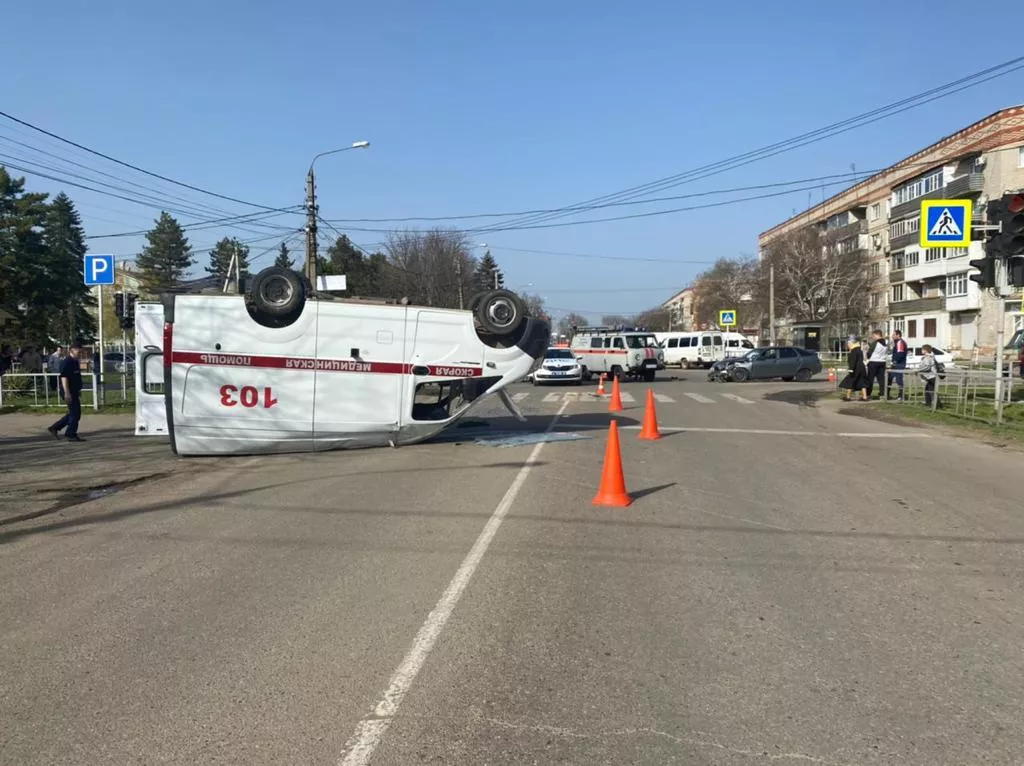 Днем в соцсетях появилась информация, что в Тимашевске перевернулась машина скорой помощи. Со слов очевидцев, в ДТП пострадали четыре человека.