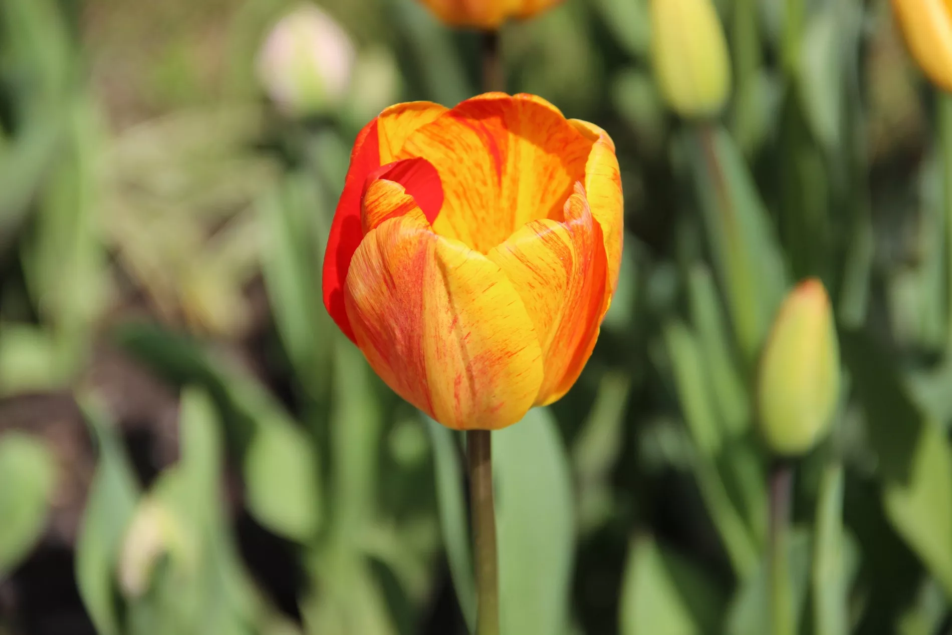 «В этом году представлены тюльпаны сорта Apeldoorn’s Elite с желтыми лепестками, украшенными яркими алыми полосами, бахромчатый сорт Valery Gergiev глубокого красного цвета, а также приглушенно фиолетовые тюльпаны сорта Dream Touch. Но главным украшением по-прежнему остаётся сорт Aveyron — долгоцветущий, с шикарным цветком из множества насыщенно-розовых лепестков», — рассказала специалист.
