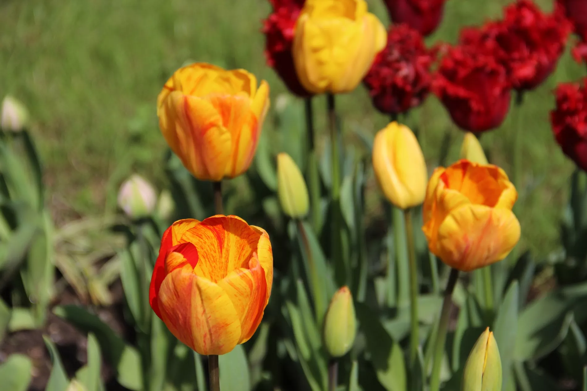Полюбоваться ими можно практически на входе в парк — около Греческой (мавританской) беседки, а цветник с пионовидными и бахромчатыми тюльпанами находится перед административным корпусом.