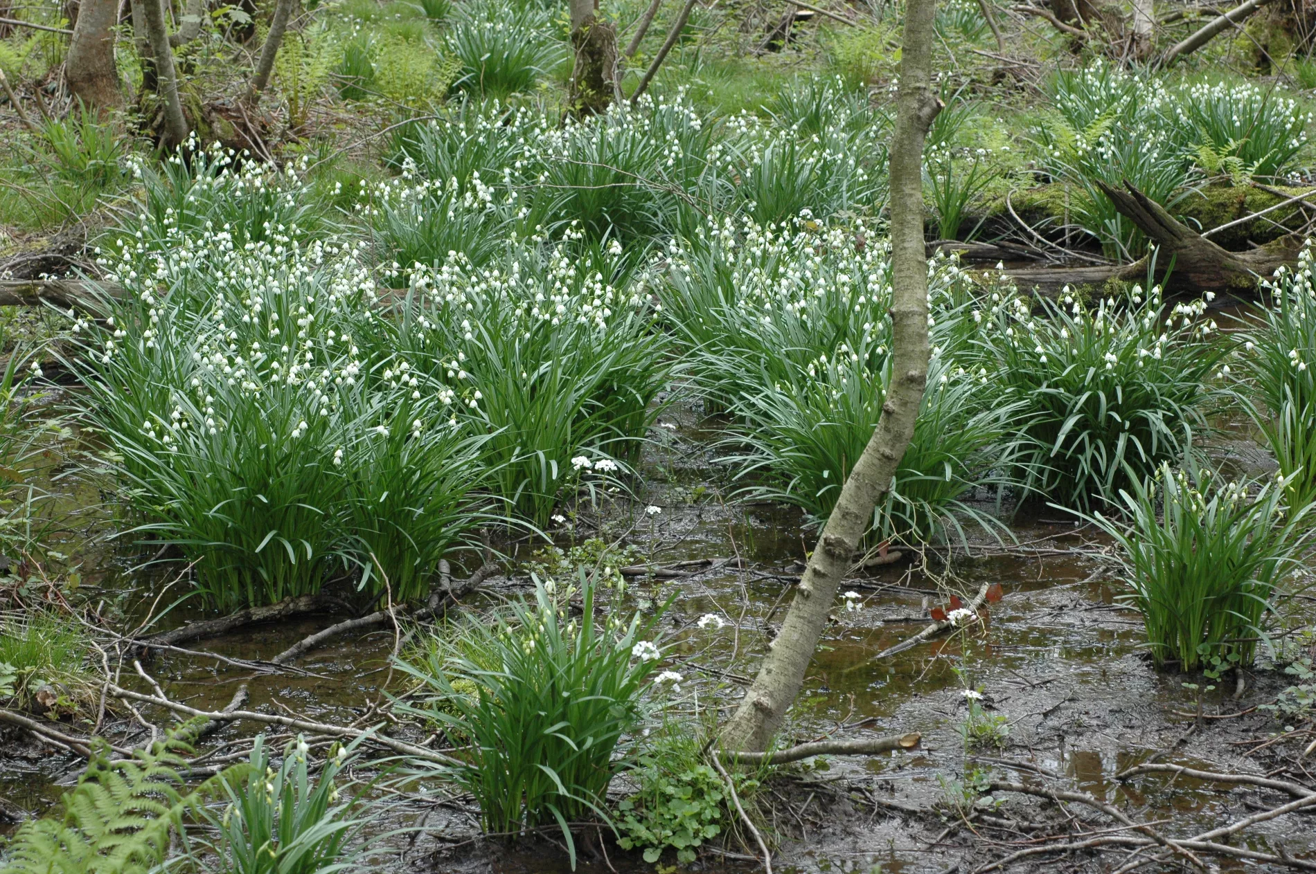 Молочно-белые цветки белоцветника распускаются в конце марта — начале апреля. Белоцветник цветет всего 2-3 недели. Он растет по заболоченным лесным участкам, реже — на влажных склонах в предгорьях.