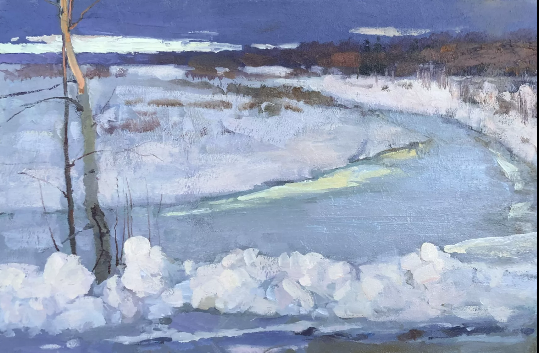 Представлены 37 работ, написанных с 2018 по 2021 годы. Часть экспозиции занимают произведения, созданные в поездке автора в Крым в 2020-м. Также можно увидеть работы, написанные в минувшем марте во время всероссийского пленэра «Грачи прилетели. XXI век» на Академической даче им. Ильи Репина в Костроме.