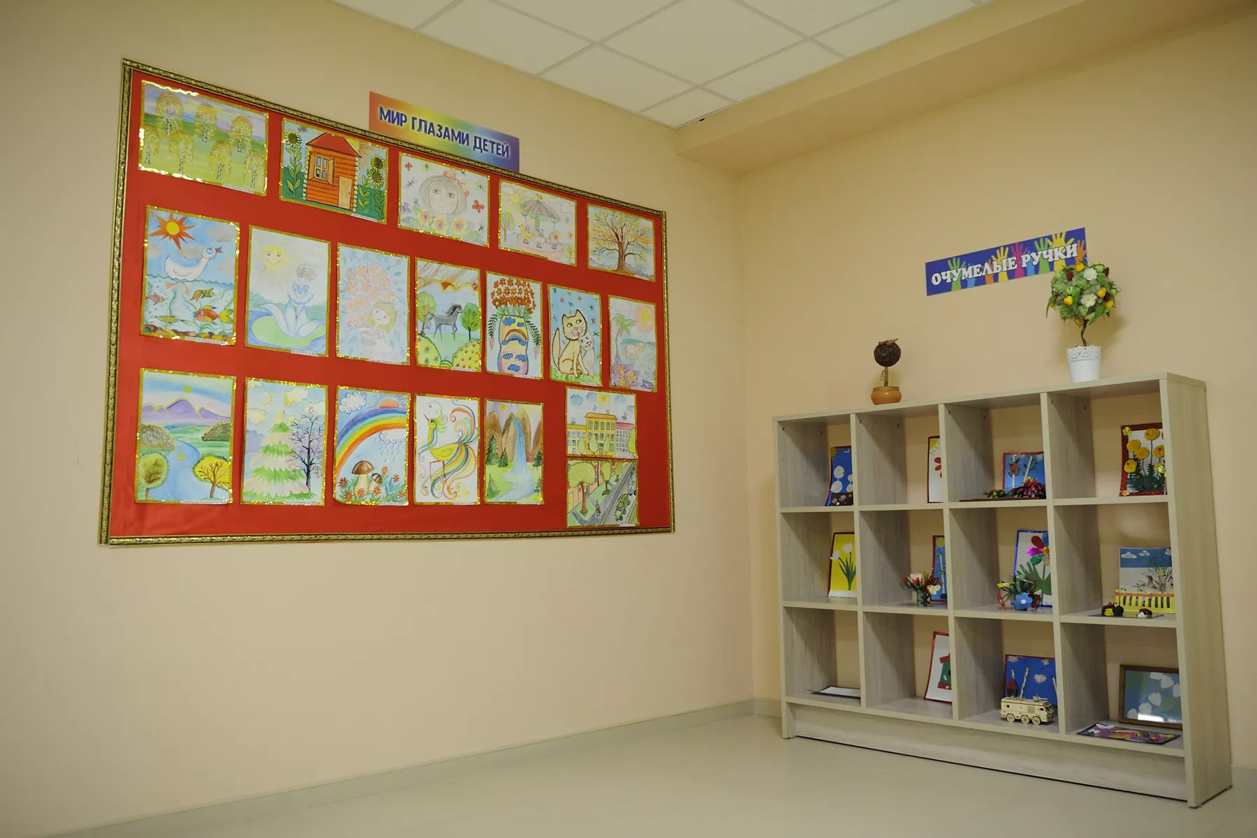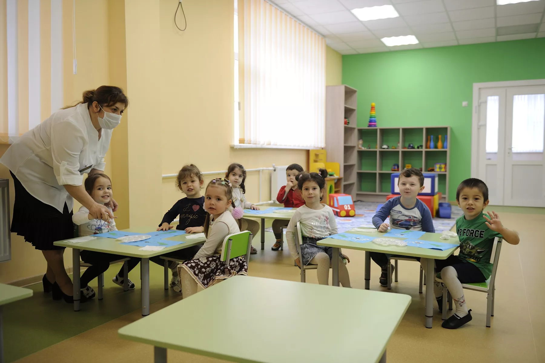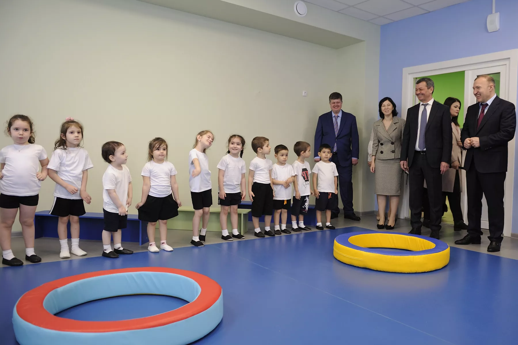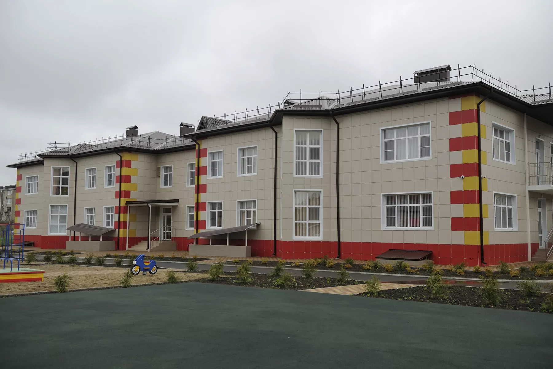 В двухэтажном здании помимо групповых помещений размещены спортивный и музыкальный залы, медицинский кабинет, пищеблок и прачечная. На территории детского сада сделали озеленение, а подъездные дороги благоустроили.