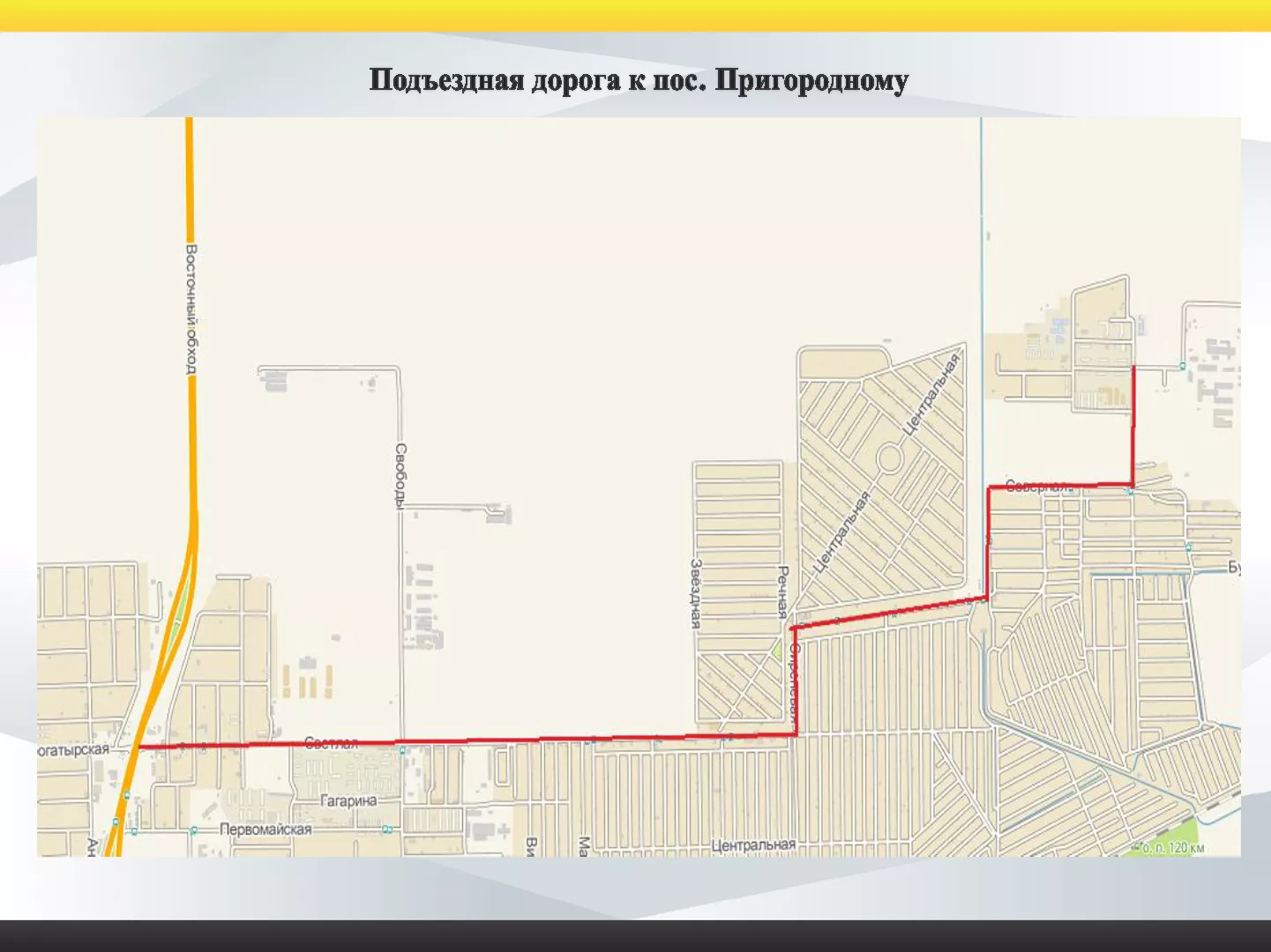 Речь идет о дороге «поселок Северный — Колосистый», которая состоит из улиц 3-ей Трудовой, Пригородной, Вольной, Изосимова и Средней. Они проходят от кольца на Витаминкомбинате до Западного Обхода. Протяженность участка — 6,8 км. Вторая дорога — подъезд к поселку Пригородному. Участок длиной 6,5 км проходит от Восточного Обхода до Пригородного.