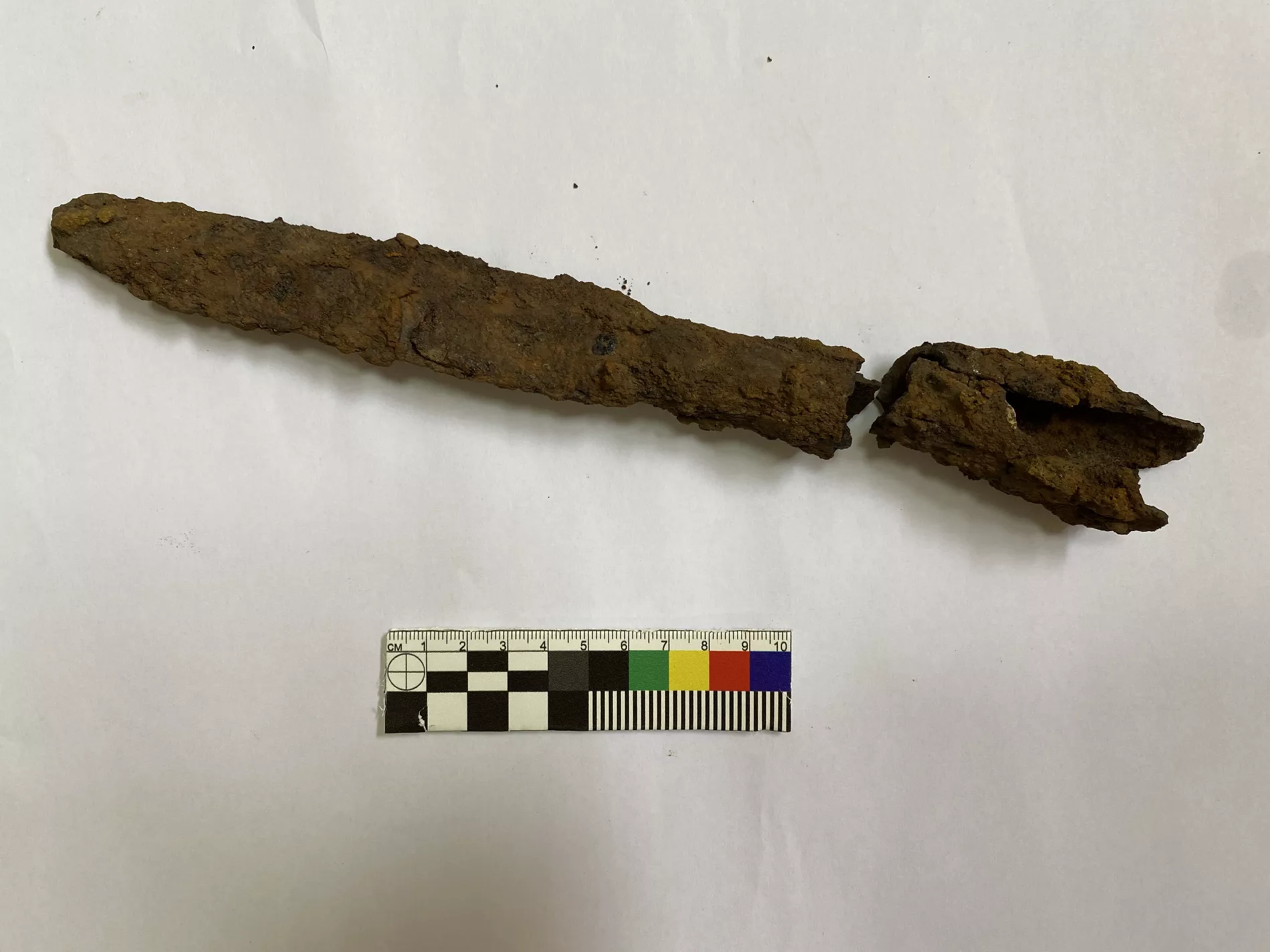 Геофизики обработали территорию более 10 тыс. кв. метров и зафиксировали неизвестные магнитные аномалии. В одной из точек локализации археологи обнаружили второе кремационное погребение средневекового воина.