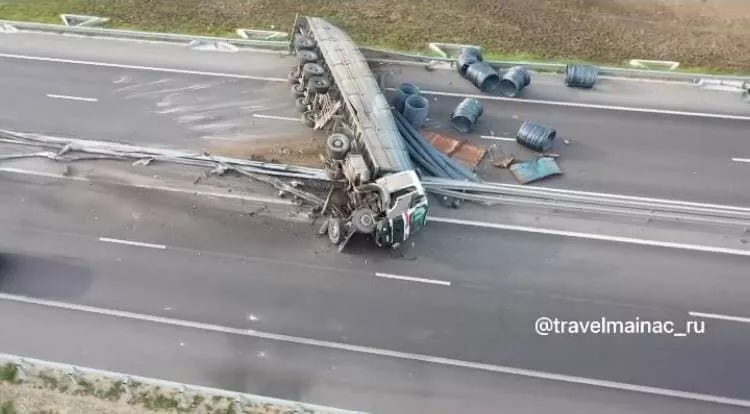 На трассе «Таврида» в Крыму перевернулась фура и на 7 часов заблокировала движение