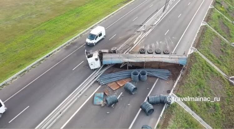 На трассе «Таврида» в Крыму перевернулась фура и на 7 часов заблокировала движение