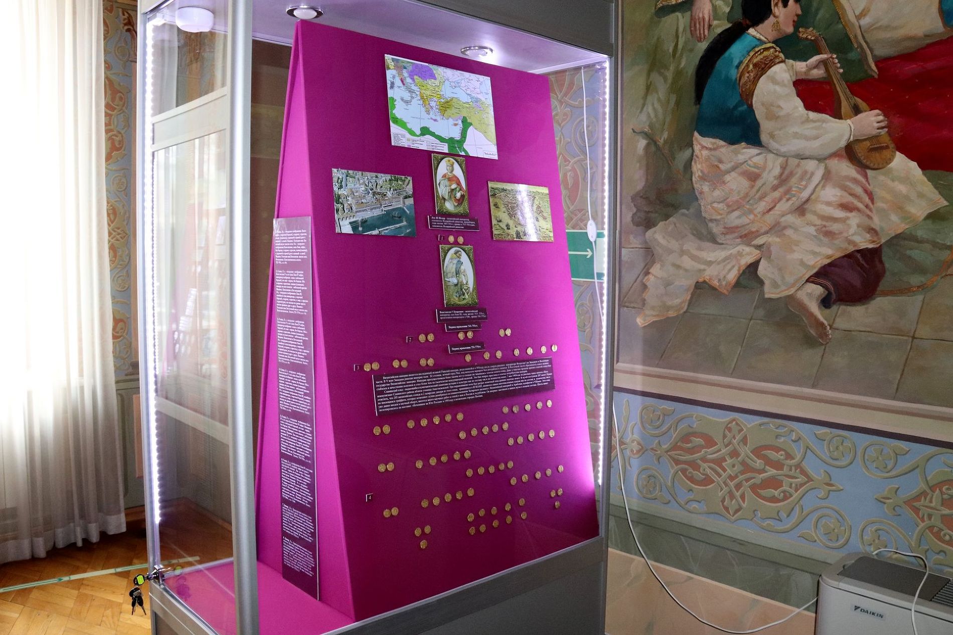 Экспозиция основана на нумизматической коллекции музея из драгоценных металлов. В витринах представлены монеты времен правления византийских императоров Льва III Исавра, Константина V Копронима и Льва IV Хазара — предметы выдающегося памятника истории и культуры — Славянского клада. Его нашли 7 мая 1989 года на рисовых чеках колхоза «Путь коммунизма» вблизи станицы Анастасиевской. В музей имени Фелицына поступили 207 монет — 205 византийских солида и 2 хазарских динара. Также на выставке представлена монетная система Российской Империи — от Петра I до Николая II.