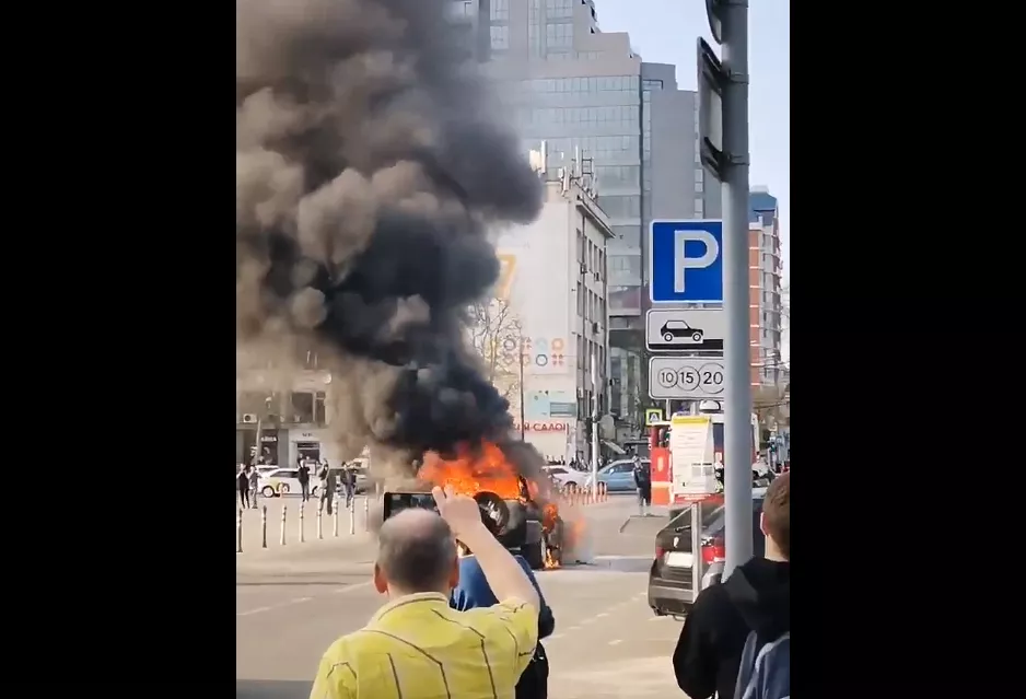 Видеозапись произошедшего опубликовали в телеграм-канале «Туподар — Краснодар». На кадрах видно, что напротив драмтеатра в Краснодаре горит автомобиль.