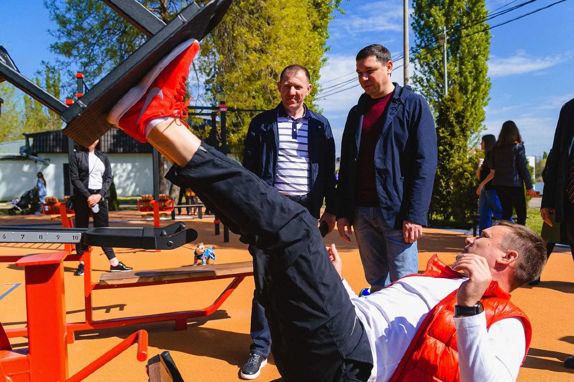 1 мая мэр Краснодара Евгений Первышов и глава администрации Карасунского округа Николай Хропов посетили облагороженный парк и осмотрели новую спортплощадку. Зампредседателя совета директоров «ЮгСтройИмпериал» Станислав Николенко провел для них экскурсию и рассказал о функционале нового оборудования.