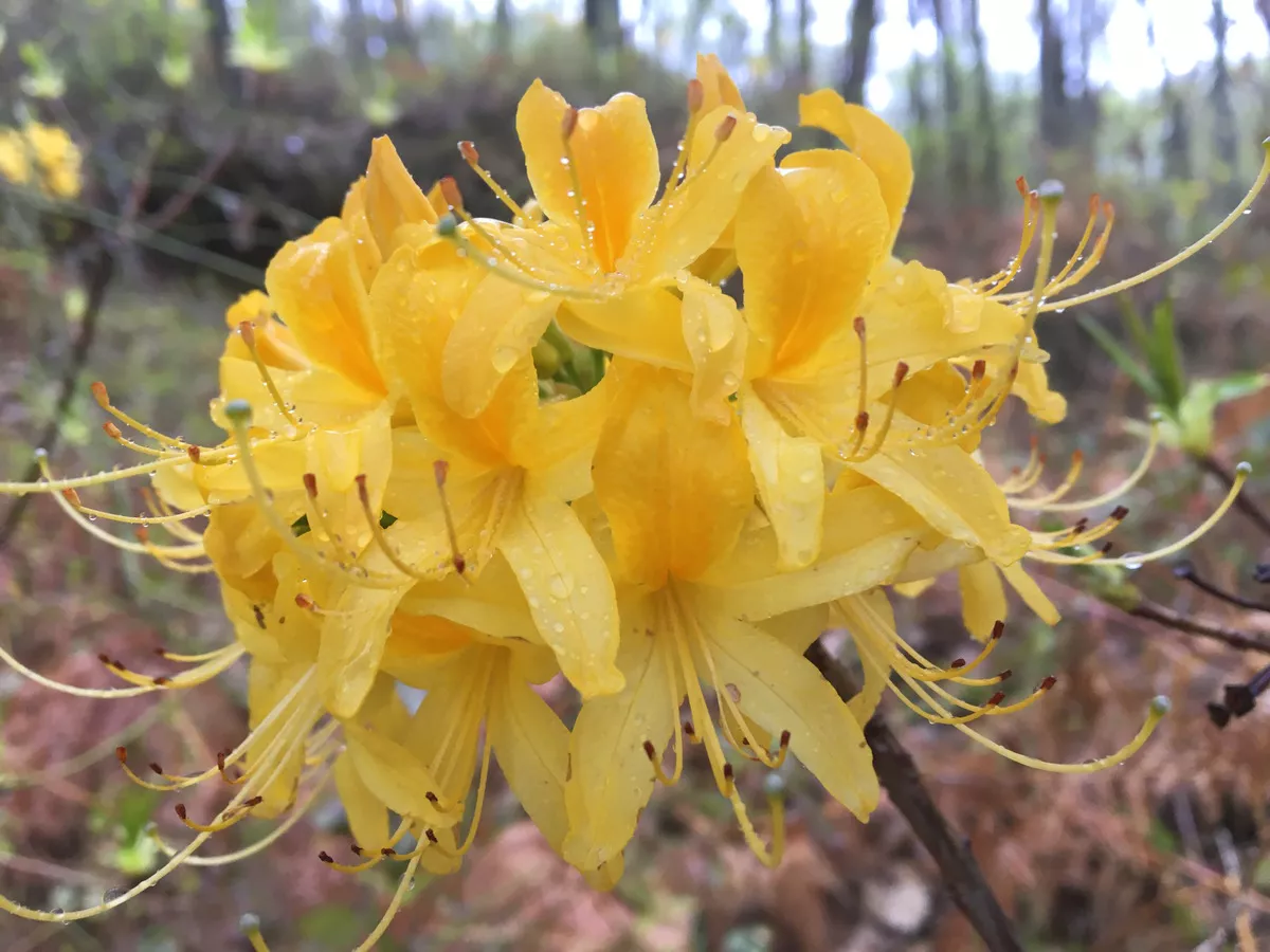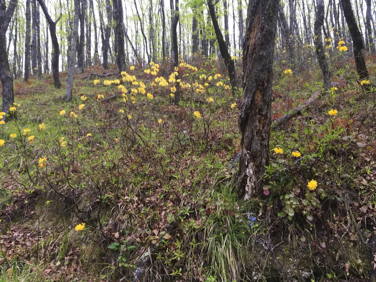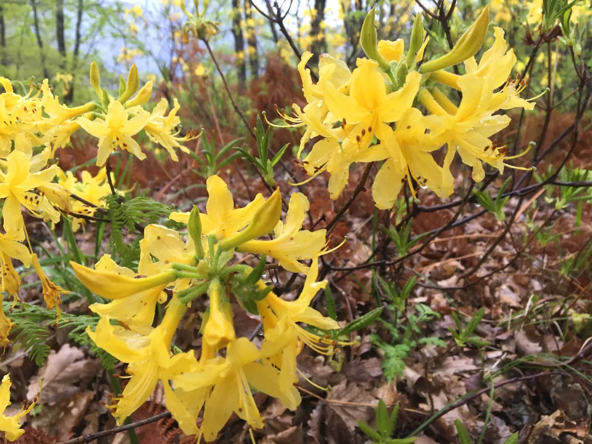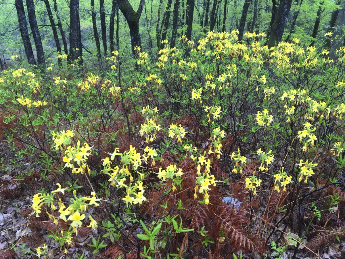 Тем временем в лесах Сочи зацвел рододендрон желтый (Rhododendron luteum). Это ветвистый кустарник высотой 2-4 метра, его остроконечные светло-зелёные или сизые листья, обрамленные ресничками, летом блекнут, а в середине осени опадают.