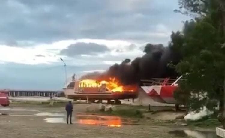 Рано утром 12 мая в поселке Лермонтово загорелся прогулочный катер