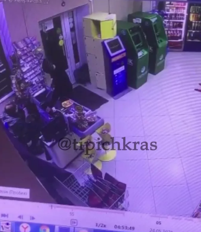Ночью в продуктовом магазине на улице Аверкиева, 12 неизвестный напал с ножом на кассира. Видео ограбления опубликовал телеграм-канала «Телетайп Краснодара». В паблике написали, что инцидент произошел в 3:53, однако на видеозаписи отображается другое время — 4:53.