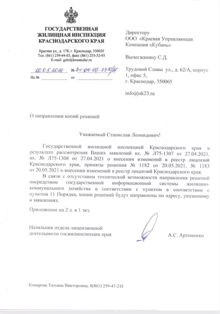 Тогда жильцы решили проголосовать за новую управляющую компанию и выбрали ООО «Краевая Управляющая Компания «Кубань». Соответствующие протоколы утвердила ГЖИ и 20 мая дала разрешение на внесение в лицензию новой УК одного из трех корпусов ЖК. С 1 июня «Кубани» разрешили приступать к управлению.