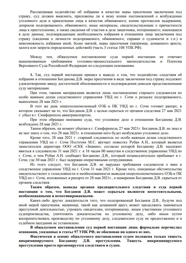 Богданова 28 мая объявили в федеральный розыск из-за уголовного дела по ч. 2 ст. 201 УК РФ (Злоупотребление полномочиями). Спустя два дня его задержали в аэропорту по возвращении из Ялты.